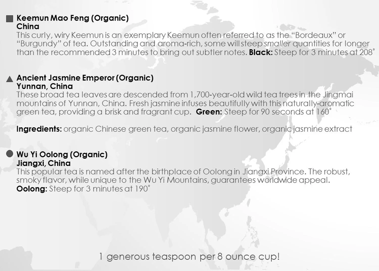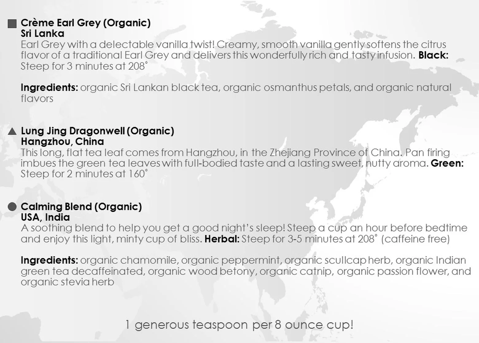 Currently I curate and provide copy for a tea-of-the-month club called “Tea Tour." From my years working behind the counter, I know the teas, the preparations, and the consumers—all fundamental elements required to write copy that intrigues and comforts both discerning experts and newcomers alike.